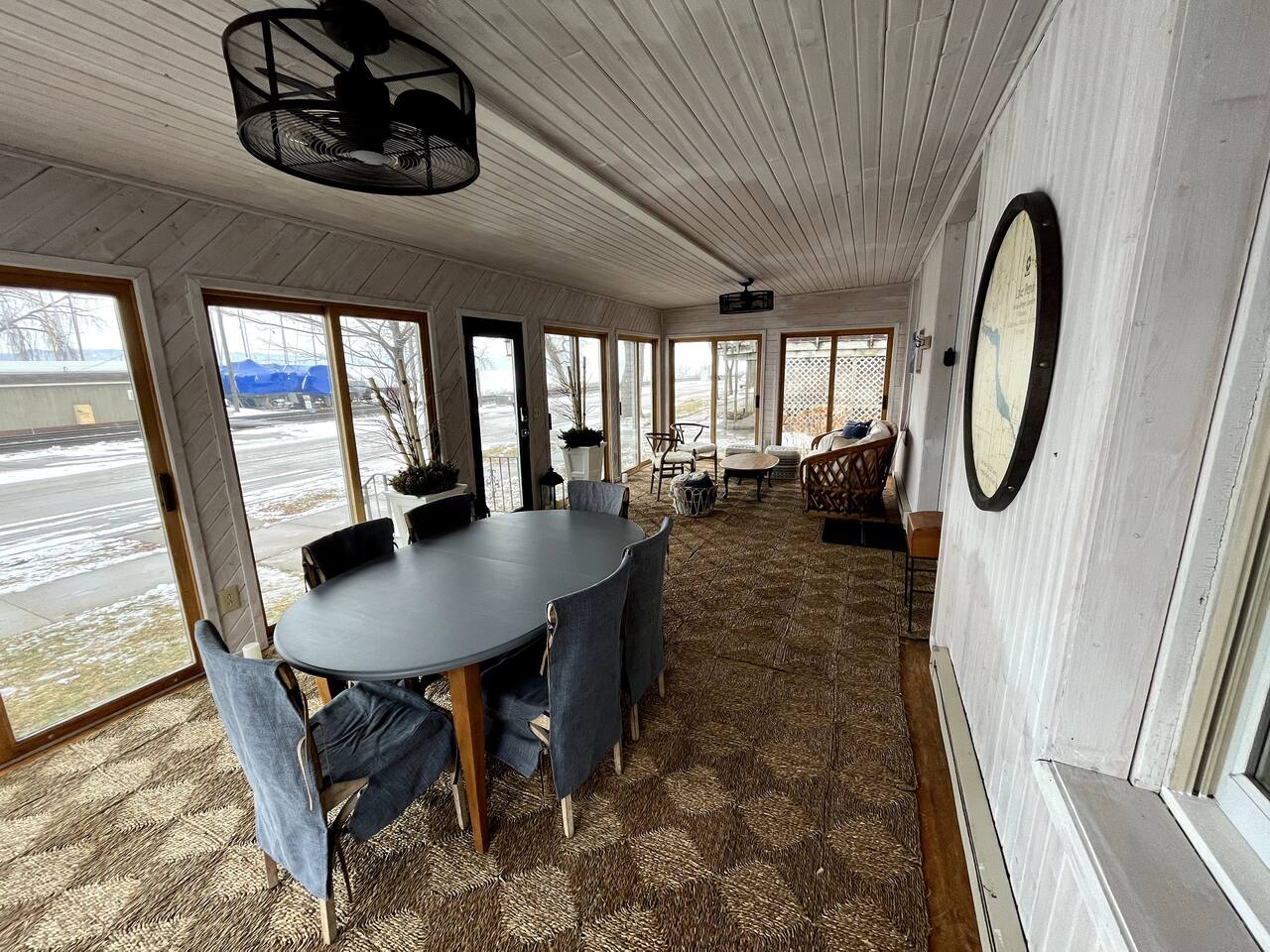 Welcome to our home - we are directly across from the public beach. We have recently (April 2024) renovated the second story deck (above the porch) and added a hot tub (access granted at check in after reserving guest has signed the deck and hot tub waiver) for more amazing views. The home has three bedrooms (two bedrooms with king beds, one bedroom with 2 twin beds) plus a study on the main floor off of the living room that has a queen murphy bed and curtains for privacy. It also has two bathrooms with showers and a 1/2 bath on the main floor. Our favorite room is the large 4-season porch with table and (newly added) porch swing- our favorite place to watch sunrises with coffee, play games, and watch the amazing sunsets, all the while playing our favorite tunes on the Sonos speaker system. There is plenty of parking in the driveway for up to eight cars.